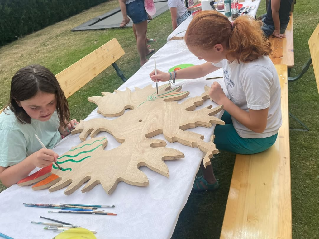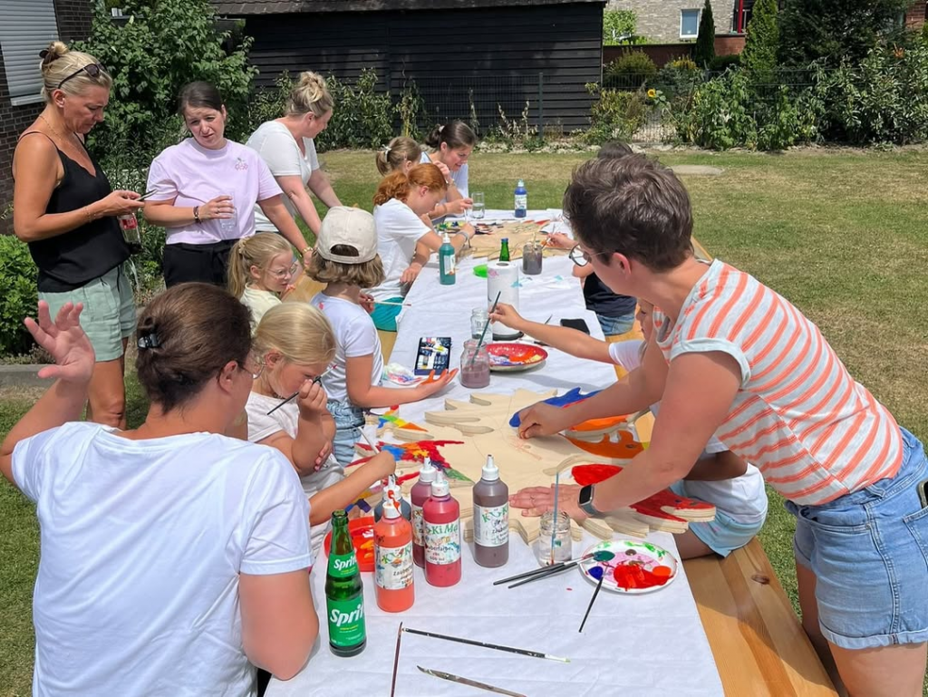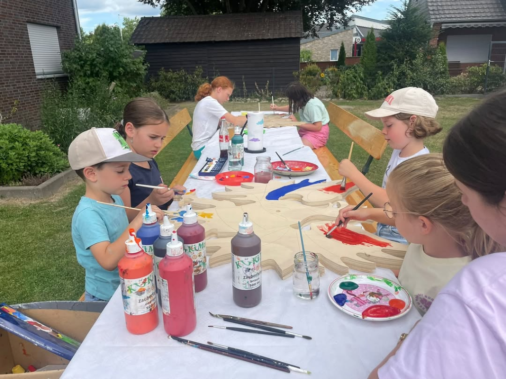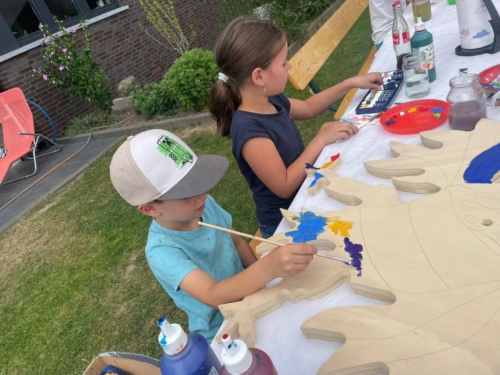 Kurz vor dem großen Vogelschuss am 23. August wurde in Vogelsrath fleißig gepinselt: Rund 20 Kinder kamen zusammen, um den Königsvogel und den Wandervogel mit Farbe und Fantasie zu gestalten.